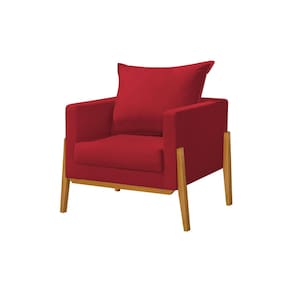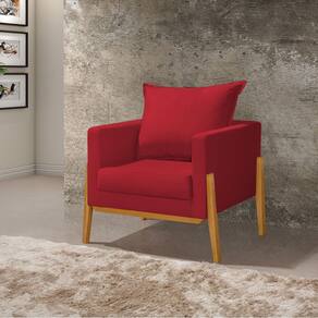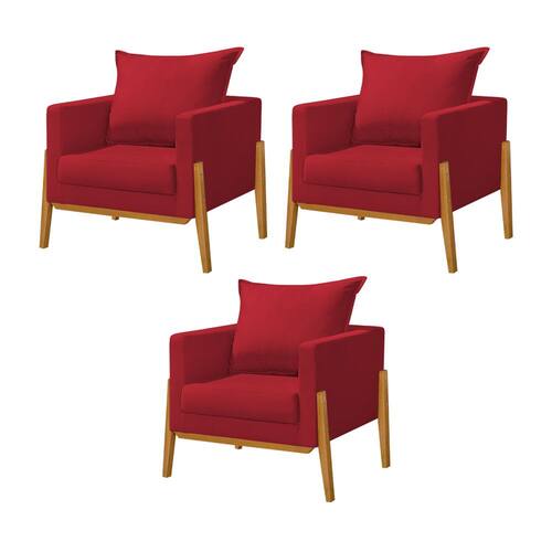 Kit 3 Poltronas Living Base e Pés em Madeira Maciça Madagascar Veludo Vermelho