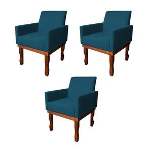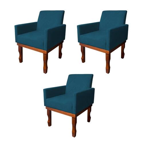 Kit 3 Poltronas Medusa Retrô Pés de Madeira Maciça Suede Azul Marinho - Azul Turquesa