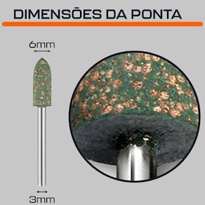 Kit com 3 Ponta Montada 6mm Cônica Borracha Abrasiva Gergelim Haste 3mm para Micro Retifica Dremax - Marca: Dremax - Kit com 3 pontas - Diâmetro da cabeça: 6mm - Diâmetro da haste: 3mm - Gramatura: Grão 180 - Material da ponta: Borracha Abrasiva Gergelim - Material da haste: aço inox - Formato da ponta: Cônica tipo bala - Pontas montadas de borracha Flexível, para retificação e polimento precisos - Uso em micro retíficas e mini lixadeiras de qualquer marca com mandril de 3mm - Seu formato facilita o trabalho em locais de difícil acesso - Indicado para desbaste, semi-acabamento e polimento, dependendo do material - Pontas montadas de borracha com abrasivos são maleáveis, porém com alto pode de desbaste devido os seus abrasivos - Seu formato facilita o trabalho em locais de difícil acesso - Garantia: 90 dias contra defeitos de fabricação A DREMAX é a primeira e única marca brasileira dedicada exclusivamente às micro retíficas, acessórios e acoplamentos para esta indispensável ferramenta. Seja para trabalhos de precisão, artesanato, modelagem ou reparos, a DREMAX tem o produto certo para você. Marca: Dremax