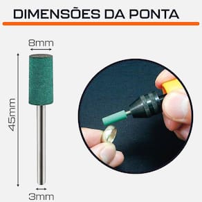 Kit com 3 Ponta Montada Cilíndrica 8mm de Borracha Abrasiva Haste 3mm para Micro Retifica Dremax - Marca: Dremax - Jogo exclusivo com 3 pontas - Diâmetro da cabeça: 8mm - Diâmetro da haste: 3mm - Comprimento total: 45mm - Gramatura: Grão 180 - Material da ponta: Borracha - Material da haste: aço inox - Pontas montadas de borracha Flexível, para retificação e polimento precisos - Uso em micro retíficas e mini lixadeiras de qualquer marca com mandril de 3mm - Seu formato facilita o trabalho em locais de difícil acesso - Uso em micro retíficas de qualquer marca com pinça de 3mm - Indicado para desbaste e semi-acabamento - Remoção de ferrugem de metal enferrujado, tratamento em joias e pré-acabamento em pedras, ouro e prata - Amplamente utilizado em moagem, molde, equipamentos médicos, equipamentos de beleza, manicure, ouro e prata jóias, aço inoxidável, vidro equipamentos, peças de máquinas e outros processos - Muito menos agressivo que tubos de lixa e pontas montadas rosa - Muito utilizado na primeira etapa no processo de polimento - : 90 dias contra defeitos de fabricação A DREMAX é a primeira e única marca brasileira dedicada exclusivamente às micro retíficas, acessórios e acoplamentos para esta indispensável ferramenta. Seja para trabalhos de precisão, artesanato, modelagem ou reparos, a DREMAX tem o produto certo para você. Marca: Não Informado