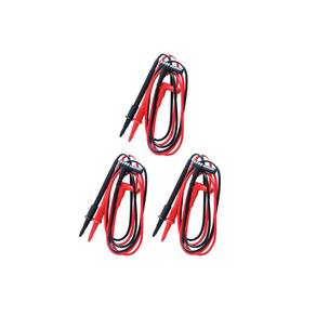 KIT 3 PONTAS DE PROVA MOD. PPM-300, CATIII 1000V ATÉ 15A DESCRIÇÃO: As pontas de prova modelo PPM-300 permitem medições de corrente elétrica de até 10A, e medições das demais grandezas elétricas, com o auxilio de um multímetro ou alicate amperímetro. O Conjunto de pontas de prova é composto por uma ponta de prova vermelha e outra preta. DESTAQUES: Teste de tensão até 1000V Teste de corrente até 15A. APLICAÇÕES: Realização de testes e ensaios com multímetros ou alicates amperímetros ESPECIFICAÇÕES TÉCNICAS: Par de pontas de prova: 1 Vermelha e 1 Preta Revestimento: PVC de alta flexibilidade Tensão máxima de teste: 1000V Corrente máxima de teste: 15A máximo 30 segundos ou 20A máximo 10 segundos. Diâmetro do cabo: 3mm Categoria: CATIII 1000V Equipamentos da Instrutherm que utilizam esta ponta de prova: MD-320, MD-340, MD-360, MD-380, MD-390, MD-600, MD-700, MD-710, MD-720, MD-730, MD-860, MD-900, MDR-400, MDA-232, MDA-235, MDA-250, VA-200, VA-318, VA-330, VA-340, VA-350, VA-400, VA-750, VA-760, VA-900, VA-910, VA-901 Temperatura de Operação: (0 a 60) ºC Umidade de Operação: (10 a 80) %UR Peso: 40g Dimensões: Cabos com 80mm comprimento e 3mm de diâmetro ACESSÓRIOS FORNECIDOS: 3 - Par de pontas de prova mod. PPM-300