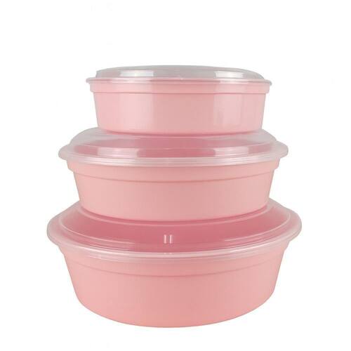 Kit 3 Potes Armazenar Alimentos Com Tampa P M G Resistentes A Microondas Freezer Frutas Legumes Rosa Kit de Potes Redondos Rosa - Elegância e Praticidade Adicione um toque de cor e funcionalidade à sua cozinha com o sofisticado Kit de Potes Redondos Rosa. Este conjunto é a escolha perfeita para quem deseja combinar estilo e eficiência no armazenamento e transporte de alimentos, garantindo que tudo fique seguro e fresco. Características Principais:Composição: Fabricado em polipropileno, um material conhecido por sua durabilidade e resistência, ideal para uso contínuo.Design Elegante: A cor rosa vibrante e o formato redondo conferem um visual moderno e atraente, trazendo um charme adicional para sua cozinha.Funcionalidade: Projetado para armazenamento e transporte sem vazamentos, mantendo seus alimentos frescos e evitando derramamentos.