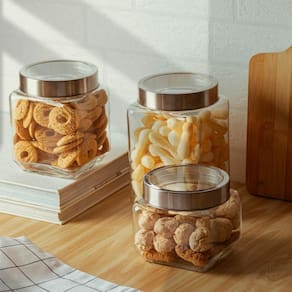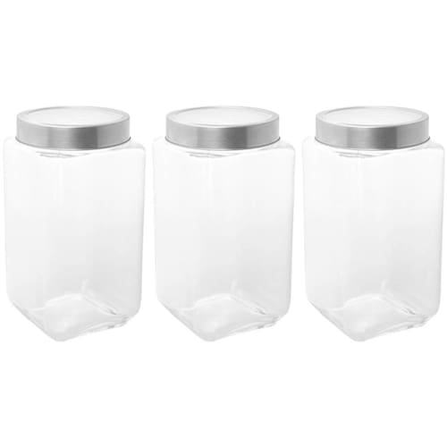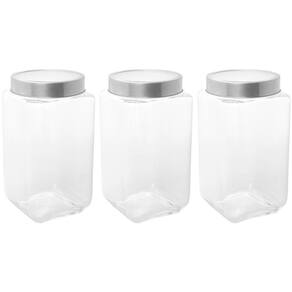 Kit 3 Potes de Vidro 1,7L Tampa Metal Lyor Gastro Prata Porta Mantimentos Retangular