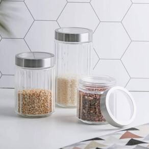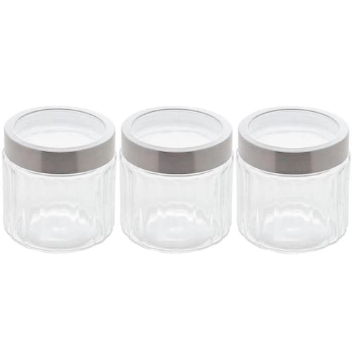 Kit 3 Potes de Vidro Borossilicato Porta Mantimentos Lyor 870ml cada Tampa Inox Sydney.