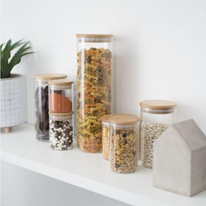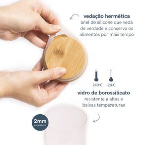 Esse é o conjunto de potes de vidro hermético redondo para mantimentos com tampa de bambu da OIKOS. Não julgue pelas aparências, ele não é só um potinho bonito: com a combinação da vedação de silicone e o bambu antibacteriano, esse pote se torna um verdadeiro mestre na conservação de alimentos! E não é só de comida que vive esse pote: algodão, cotonete, carregadores, dados, jogos, bola de gude, marshmellows, cápsulas de café, itens de costura e o que mais você quiser guardar - isso que é versatilidade.