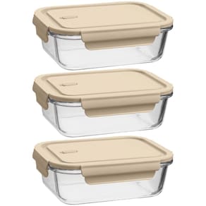 Kit 3 Potes de Vidro Herméticos 1,04L Capuccino UZ Porta Mantimentos Marmita Borossilicato.