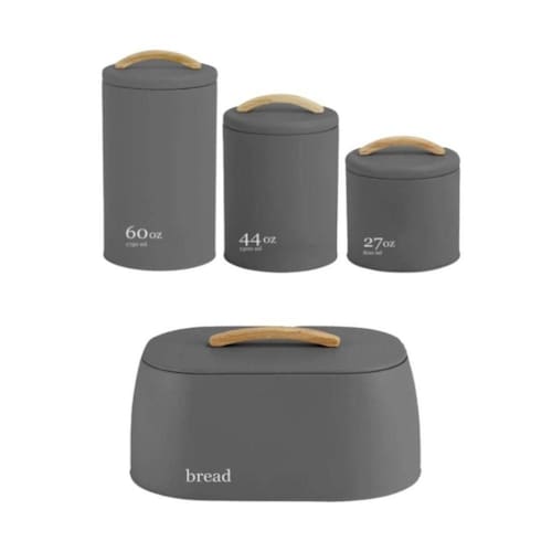 Kit 3 Potes Mantimentos + Portão Pão em Metal e Bambu Sense Chumbo Ou - Itens inclusos01 Pote Metal com Alça Bambu (Diâm. x Alt.): 11 x 23,5 - 1,75 L