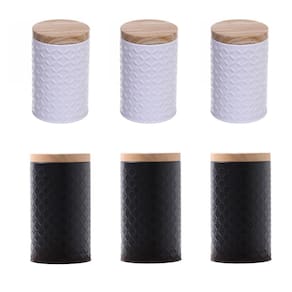 Características: Cor: Branco ou Preto Material: Metal Largura: 10cm Comprimento: 10cm Altura: 19,5cm Tampa: Material da tampa é metal que imita bambu, para que a vedação seja mais eficiente.