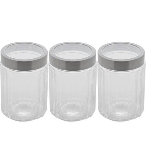 Kit 3 Potes Vidro Borossilicato Lyor 1,2L cada Tampa Prata Sydney Porta Mantimentos Condimentos.