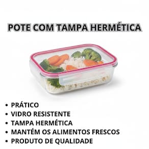 ? Hermético com 4 Travas: Mantém o frescor dos alimentos por mais tempo, sem vazamentos.? Vidro Premium: Mais resistente, seguro para micro-ondas, lava-louças e freezer.? Design Retangular Inteligente: Facilita o armazenamento, aproveitando melhor o espaço da geladeira ou armário.? Versátil e Elegante: Ideal para marmitas, preparações caseiras, organização de mantimentos ou refeições do dia a dia.