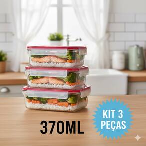 Organize sua cozinha com elegância e segurança! Este kit com 3 potes de vidro retangular de 370ml é perfeito para armazenar alimentos frescos, temperos ou marmitas, mantendo tudo sempre protegido e livre de odores.