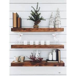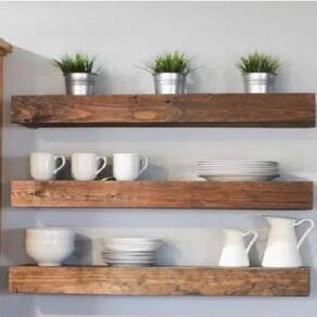 50 cm comprimento 15 cm profundidade pode variar entre 14 e 15cm úteis Espessura da prateleira: de 4 a 5 cm Material: madeira maciça de pinus