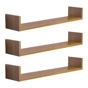Kit 3 Prateleiras U 80 x 15cm Freijó Suporte Invisível - Marrom