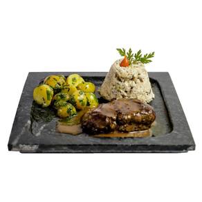 03 Pratos Quadrado Raso Servir Porção em Pedra Sabão G 24x24.