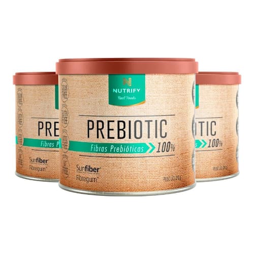 Kit 3 prebiotic fibras prebióticas nutrify 210g Benefícios: regularidade intestinal. e controle glicêmico. Manter um sistema digestivo saudável favorece a prevenção de doenças e a absorção de nutrientes, além de melhorar o bem-estar geral. Prebiotic nutrify oferece um mix de fibras reguladoras: fibregum, goma acácia acacia senegal l. e sunfiber, goma guar parcialmente hidrolisada. Sua formulação contribui para o aumento da presença de bactérias benéficas no organismo, reforçando suas defesas naturais, favorecendo a e auxiliando no controle dos níveis séricos de açúcar. Prebiotic nutrify pode ser adicionado a bebidas ou receitas de sua preferência, um prático aliado para aumentar o consumo diário de fibras. As fibras alimentares auxiliam no funcionamento do intestino. Nutrify valoriza a origem de cada ingrediente, respeita a integridade de suas fontes naturais e dos envolvidos em sua produção. É assim que criamos produtos saudáveis e saborosos, que fazem bem para as pessoas e para o planeta. Acreditamos que nutrir corpo e mente de modo saudável nos torna capazes de alimentar o mundo com atitudes positivas. Ingredientes: fibra goma acácia acacia senegal l. , fibra goma guar parcialmente hidrolisada e antiumectante dióxido de silício. Não contém glúten. Este produto não é um . Não exceder a recomendação diária de consumo indicada na embalagem. Mantenha fora do alcance de crianças. Este produto é recomendado para adultos a partir de 19 anos. Apresentação: embalagem disponível: lata contendo suplementoem pó. Peso líquido: 210 g produto classificado como: suplemento alimentar em pó. Marca: Não Informado