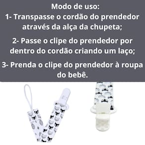 Além disso, o prendedor de chupetas Pietra Baby é compatível com a maioria dos modelos de chupetas, oferecendo versatilidade e praticidade. Ele pode ser preso à roupinha, no babador, na bolsa ou onde mais for conveniente para você e seu bebê. Marca: Pietra Baby