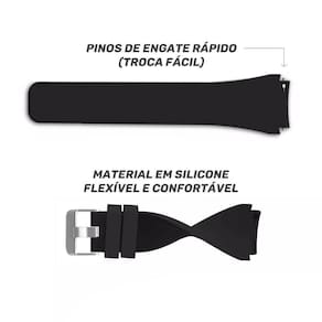 Kit 3 pulseiras para gtr 3 ou gtr 3 pro troca fácil Atenção: somente as pulseiras, não acompanha relógioElas servem em ambos os modelos ( gtr3 ou gtr3 pro) Características Material: silicone macio, confortável e flexívelComprimento: 125mm - 97mm com a fivelaEncaixe: 22mm com pinos de engate rápido (troca fácil)Fivela: aço inoxidável Conteúdo da embalagem 3x pulseiras para gtr 3 ou gtr 3 pro troca fácilCores: preta, cinza e azul marinho Despachamos rápido Enviamos para todo o brasil Informações importantes 1 - os itens e acessórios deste anúncio não possuem relação com a marca do fabricante do relógio, smartwatch ou smartwatch.2 - as imagens do anúncio são ilustrativas, ou seja, pode ocorrer leve variação entre o que é visualizado aqui e o produto físico.