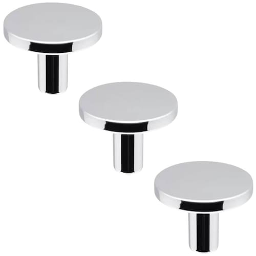 Garantia: 3 anos / Peso: 39g / Cor predominante: cromado / Referência: 7798139814874; Dimensões de cada puxador: 2,3cm (D) x 2,3cm (L) x 1,7cm (A); Material: zamac; Conteúdo: 3 puxadores redondos.