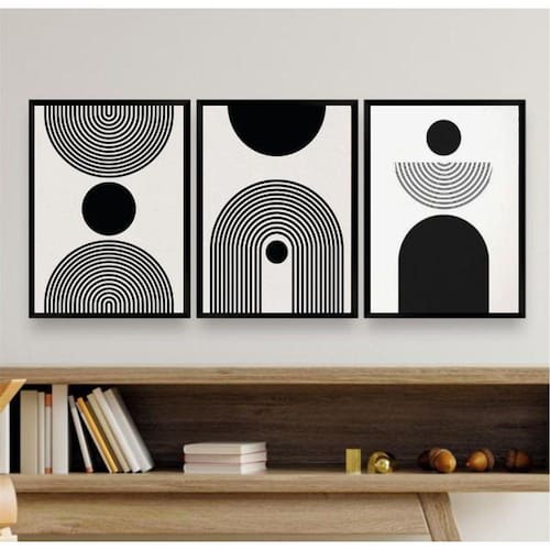 O Kit 3 Quadros Abstratos Formas Geométricas Matisse é perfeito para adicionar um toque de estilo e modernidade à decoração de qualquer ambiente. Com moldura de madeira branca, esses quadros são ideais para quartos, salas, cozinhas, escritórios, áreas gourmet e muito mais.