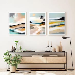 Kit 3 quadros abstratos praia estilo pintura 33x24cm Cor: moldura branca Informações do produto tire todas as suas dúvidas no descritivo abaixo: decoração para quarto, sala, cozinha, escritório, área gourmet e muito mais. Chega de paredes vazias medidas - cada peça tem 33x24cm a4 . Material do papel - papel fotográfico brilhante de altíssima resolução acabamento - todos os quadros são acompanhados de uma película de acetato para proteção da imagem. - os quadros são embalados de forma segura com plástico bolha com camada dupla de acordo com o tamanho dos quadros. Garantia - garantia de 3 meses. Meu quadro chegou. Como posso fixá-lo Você precisa apenas de um martelo e um prego, pois os quadros já vão acompanhados de penduradores. Esta é a forma mais indicada. Caso prefira, você pode utilizar uma fita dupla face neste caso, sugerimos de alta qualidade para evitar que descole e seu quadro caia . Como posso limpar meu quadro A limpeza é feita como um móvel comum da sua casa. Apenas um pano seco ou espanador são suficientes para tal