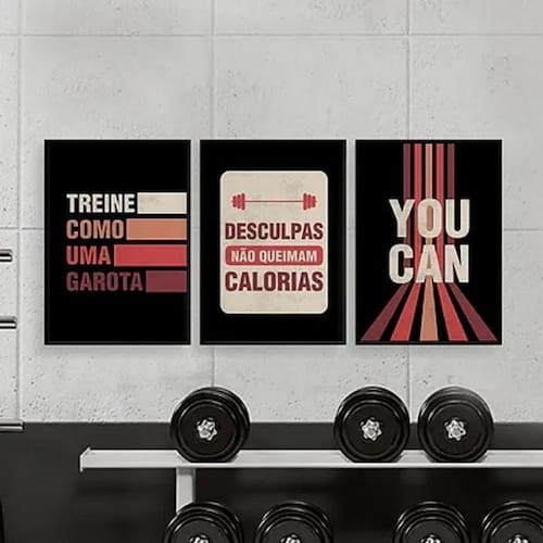 Kit 3 quadros academia feminino treine como uma garota 45x34cm - com vidro Moldura: madeira branca Informações do produto tire todas as suas dúvidas no descritivo abaixo: decoração para quarto, sala, cozinha, escritório, área gourmet e muito mais. Chega de paredes vazias medidas - cada peça tem 45x34cm a3 . Material do papel - papel fotográfico brilhante de altíssima resolução acabamento - todos os quadros são acompanhados de vidro para proteção da imagem. - moldura em madeira maciça na cor preta ou branca conforme produto escolhido e pendurador . - os quadros são embalados de forma segura com plástico bolha com camada dupla de acordo com o tamanho dos quadros. Garantia - garantia de 3 meses. Meu quadro chegou. Como posso fixá-lo Você precisa apenas de um martelo e um prego, pois os quadros já vão acompanhados de penduradores. Esta é a forma mais indicada. Como posso limpar meu quadro A limpeza é feita como um móvel comum da sua casa. Apenas um pano seco ou espanador são suficientes para tal Ean: 7892715109962