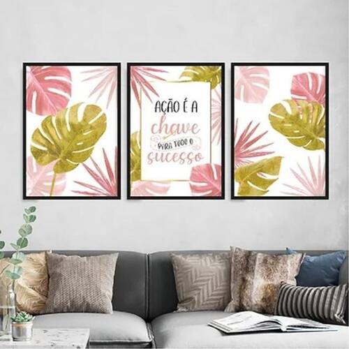 Kit 3 quadros ação é a chave para o sucesso 45x34cm - com vidro Moldura: madeira preta Informações do produto Decoração para quarto, sala, cozinha, escritório, área gourmet e muito mais. Chega de paredes vazias Medidas - cada peça tem 45x34cm a3 . Material do papel - papel fotográfico brilhante de altíssima resolução Acabamento - todos os quadros são acompanhados de vidro para proteção da imagem. - moldura em madeira maciça e pendurador. - os quadros são embalados de forma segura com plástico bolha com camada dupla de acordo com o tamanho dos quadros. - de 3 meses. Meu quadro chegou. Como posso fixá-lo Você precisa apenas de um martelo e um prego, pois os quadros já vão acompanhados de penduradores. Esta é a forma mais indicada. Caso prefira, você pode utilizar uma fita dupla face neste caso, sugerimos de alta qualidade para evitar que descole e seu quadro caia . Como posso limpar meu quadro A limpeza é feita como um móvel comum da sua casa. Apenas um pano seco ou espanador são suficientes para tal.