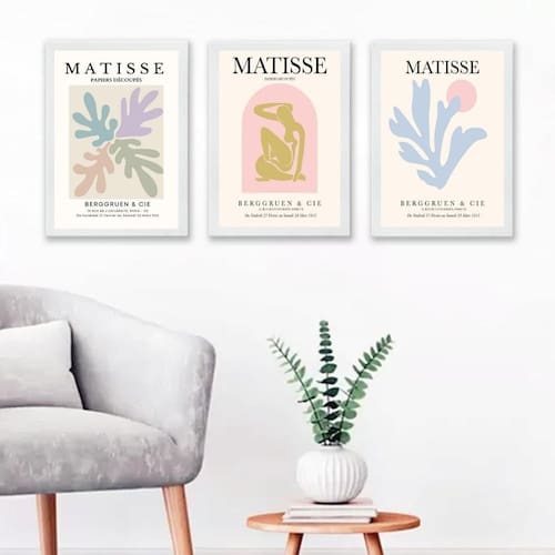 Kit 3 quadros artes matisse candy colors 45x34cm - com vidro Moldura: madeira branca Informações do produto tire todas as suas dúvidas no descritivo abaixo: decoração para quarto, sala, cozinha, escritório, área gourmet e muito mais. Chega de paredes vazias medidas - cada peça tem 45x34cm a3 . Material do papel - papel fotográfico brilhante de altíssima resolução acabamento - todos os quadros são acompanhados de vidro para proteção da imagem. - moldura em madeira maciça na cor preta ou branca conforme produto escolhido e pendurador . - os quadros são embalados de forma segura com plástico bolha com camada dupla de acordo com o tamanho dos quadros. Garantia - garantia de 3 meses. Meu quadro chegou. Como posso fixá-lo Você precisa apenas de um martelo e um prego, pois os quadros já vão acompanhados de penduradores. Esta é a forma mais indicada. Como posso limpar meu quadro A limpeza é feita como um móvel comum da sua casa. Apenas um pano seco ou espanador são suficientes para tal