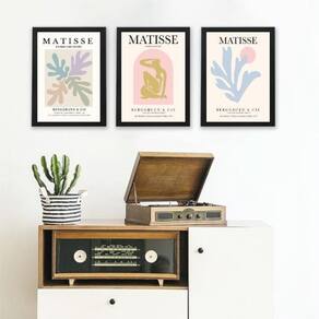 Kit 3 quadros artes matisse candy colors 45x34cm Moldura: madeira preta Informações do produto tire todas as suas dúvidas no descritivo abaixo: decoração para quarto, sala, cozinha, escritório, área gourmet e muito mais. Chega de paredes vazias. Medidas - cada peça tem 45x34cm a3 . Material do papel - papel fotográfico brilhante de altíssima resolução acabamento - todos os quadros são acompanhados de uma película de acetato para proteção da imagem. - os quadros são embalados de forma segura com plástico bolha com camada dupla de acordo com o tamanho dos quadros. Garantia - garantia de 3 meses. Meu quadro chegou. Como posso fixá-lo Você precisa apenas de um martelo e um prego, pois os quadros já vão acompanhados de penduradores. Esta é a forma mais indicada. Caso prefira, você pode utilizar uma fita dupla face neste caso, sugerimos de alta qualidade para evitar que descole e seu quadro caia . Como posso limpar meu quadro A limpeza é feita como um móvel comum da sua casa. Apenas um pano seco ou espanador são suficientes para tal