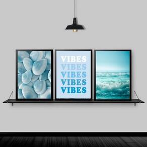 Kit 3 Quadros Azuis Mar Vibes 33X24Cm