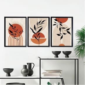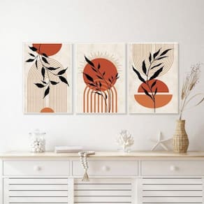 Kit 3 quadros bohos folhas e círculos terracota 45x34cm Moldura: madeira branca Informações do produto tire todas as suas dúvidas no descritivo abaixo: decoração para quarto, sala, cozinha, escritório, área gourmet e muito mais. Chega de paredes vazias. Medidas - cada peça tem 45x34cm a3 . Material do papel - papel fotográfico brilhante de altíssima resolução acabamento - todos os quadros são acompanhados de uma película de acetato para proteção da imagem. - os quadros são embalados de forma segura com plástico bolha com camada dupla de acordo com o tamanho dos quadros. Garantia - garantia de 3 meses. Meu quadro chegou. Como posso fixá-lo Você precisa apenas de um martelo e um prego, pois os quadros já vão acompanhados de penduradores. Esta é a forma mais indicada. Caso prefira, você pode utilizar uma fita dupla face neste caso, sugerimos de alta qualidade para evitar que descole e seu quadro caia . Como posso limpar meu quadro A limpeza é feita como um móvel comum da sua casa. Apenas um pano seco ou espanador são suficientes para tal Ean: 7898817509150