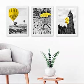 Se você está em busca de uma decoração moderna e estilosa, o Kit 3 Quadros Fotografias Cidades Preto Branco Amarelo é a escolha perfeita. Adquira já o seu e transforme o ambiente da sua casa com muito bom gosto e personalidade.