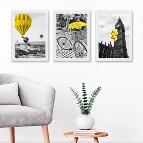 Garanta já o Kit 3 Quadros Fotografias Cidades Preto Branco Amarelo e deixe sua decoração ainda mais especial e personalizada. Adquira agora mesmo! Ean: 7891878791878