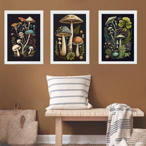 Kit 3 quadros cogumelos vintage 24x18cm Moldura: madeira branca Informações do produto tire todas as suas dúvidas no descritivo abaixo: decoração para quarto, sala, cozinha, escritório, área gourmet e muito mais. Chega de paredes vazias medidas - cada peça tem 24x18cm a5 . Material do papel - papel fotográfico brilhante de altíssima resolução acabamento - todos os quadros são acompanhados de uma película de acetato para proteção da imagem. - os quadros são embalados de forma segura com plástico bolha com camada dupla de acordo com o tamanho dos quadros. Garantia - garantia de 3 meses. Meu quadro chegou. Como posso fixá-lo Você precisa apenas de um martelo e um prego, pois os quadros já vão acompanhados de penduradores. Esta é a forma mais indicada. Caso prefira, você pode utilizar uma fita dupla face neste caso, sugerimos de alta qualidade para evitar que descole e seu quadro caia . Como posso limpar meu quadro A limpeza é feita como um móvel comum da sua casa. Apenas um pano seco ou espanador são suficientes para tal