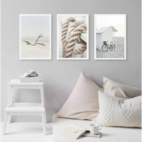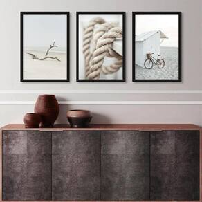 Kit 3 quadros coleção praia branco e bege 24x18cm - com vidro Moldura: madeira preta Informações do produto tire todas as suas dúvidas no descritivo abaixo: decoração para quarto, sala, cozinha, escritório, área gourmet e muito mais. Chega de paredes vazias medidas - cada peça tem 24x18cm a5 . Material do papel - papel fotográfico brilhante de altíssima resolução acabamento - todos os quadros são acompanhados de vidro para proteção da imagem. - moldura em madeira maciça na cor preta ou branca conforme produto escolhido e pendurador . - os quadros são embalados de forma segura com plástico bolha com camada dupla de acordo com o tamanho dos quadros. Garantia - garantia de 3 meses. Meu quadro chegou. Como posso fixá-lo Você precisa apenas de um martelo e um prego, pois os quadros já vão acompanhados de penduradores. Esta é a forma mais indicada. Como posso limpar meu quadro A limpeza é feita como um móvel comum da sua casa. Apenas um pano seco ou espanador são suficientes para tal