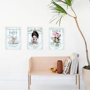 Kit 3 quadros cozinha azul e rosa café de paris 24x18cm Moldura: madeira branca Informações do produto tire todas as suas dúvidas no descritivo abaixo: decoração para quarto, sala, cozinha, escritório, área gourmet e muito mais. Chega de paredes vazias medidas - cada peça tem 24x18cm a5 . Material do papel - papel fotográfico brilhante de altíssima resolução acabamento - todos os quadros são acompanhados de uma película de acetato para proteção da imagem. - os quadros são embalados de forma segura com plástico bolha com camada dupla de acordo com o tamanho dos quadros. Garantia - garantia de 3 meses. Meu quadro chegou. Como posso fixá-lo Você precisa apenas de um martelo e um prego, pois os quadros já vão acompanhados de penduradores. Esta é a forma mais indicada. Caso prefira, você pode utilizar uma fita dupla face neste caso, sugerimos de alta qualidade para evitar que descole e seu quadro caia . Como posso limpar meu quadro A limpeza é feita como um móvel comum da sua casa. Apenas um pano seco ou espanador são suficientes para tal