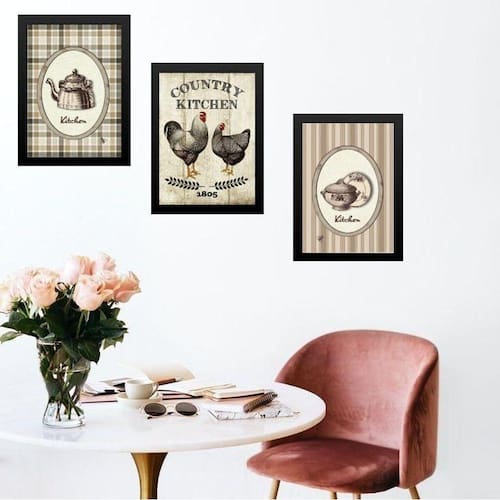 Kit 3 quadros cozinha country kitchen 33x24cm - com vidro Moldura: madeira branca Informações do produto tire todas as suas dúvidas no descritivo abaixo: decoração para quarto, sala, cozinha, escritório, área gourmet e muito mais. Chega de paredes vazias medidas - cada peça tem 33x24cm a4 . Material do papel - papel fotográfico brilhante de altíssima resolução acabamento - todos os quadros são acompanhados de vidro para proteção da imagem. - moldura em madeira maciça na cor preta ou branca conforme produto escolhido e pendurador . - os quadros são embalados de forma segura com plástico bolha com camada dupla de acordo com o tamanho dos quadros. Garantia - garantia de 3 meses. Meu quadro chegou. Como posso fixá-lo Você precisa apenas de um martelo e um prego, pois os quadros já vão acompanhados de penduradores. Esta é a forma mais indicada. Como posso limpar meu quadro A limpeza é feita como um móvel comum da sua casa. Apenas um pano seco ou espanador são suficientes para tal