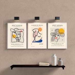 Renove a decoração da sua casa com o Kit 3 Quadros Minimalistas Cubismo Picasso. Com medidas de 45x34cm cada, esses quadros são perfeitos para dar um toque especial em qualquer ambiente, seja no quarto, sala, cozinha, escritório, área gourmet e muito mais.