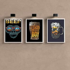 O Kit 3 Quadros Decoração Bar Barbearia Beer Boy é perfeito para decorar o seu ambiente com muito estilo. Com medidas de 45x34cm A3 , cada peça é produzida em papel fotográfico brilhante de altíssima resolução, garantindo uma imagem nítida e de qualidade.