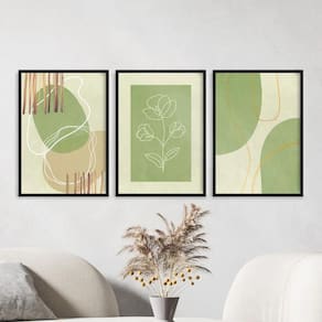 Kit 3 Quadros Decorativos Abstratos Verde e Bege 24x18cm
