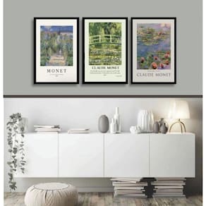 Kit 3 quadros decorativos artes de monet 33x24cm Moldura: madeira preta Informações do produto tire todas as suas dúvidas no descritivo abaixo: decoração para quarto, sala, cozinha, escritório, área gourmet e muito mais. Chega de paredes vazias medidas - cada peça tem 33x24cm a4 . Material do papel - papel fotográfico brilhante de altíssima resolução acabamento - todos os quadros são acompanhados de uma película de acetato para proteção da imagem. - os quadros são embalados de forma segura com plástico bolha com camada dupla de acordo com o tamanho dos quadros. Garantia - garantia de 3 meses. Meu quadro chegou. Como posso fixá-lo Você precisa apenas de um martelo e um prego, pois os quadros já vão acompanhados de penduradores. Esta é a forma mais indicada. Caso prefira, você pode utilizar uma fita dupla face neste caso, sugerimos de alta qualidade para evitar que descole e seu quadro caia . Como posso limpar meu quadro A limpeza é feita como um móvel comum da sua casa. Apenas um pano seco ou espanador são suficientes para tal