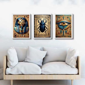 Kit 3 quadros decorativos artes egípcias 33x24cm Cor: moldura preta Informações do produto tire todas as suas dúvidas no descritivo abaixo: decoração para quarto, sala, cozinha, escritório, área gourmet e muito mais. Chega de paredes vazias medidas - cada peça tem 33x24cm a4 . Material do papel - papel fotográfico brilhante de altíssima resolução acabamento - todos os quadros são acompanhados de uma película de acetato para proteção da imagem. - os quadros são embalados de forma segura com plástico bolha com camada dupla de acordo com o tamanho dos quadros. Garantia - garantia de 3 meses. Meu quadro chegou. Como posso fixá-lo Você precisa apenas de um martelo e um prego, pois os quadros já vão acompanhados de penduradores. Esta é a forma mais indicada. Caso prefira, você pode utilizar uma fita dupla face neste caso, sugerimos de alta qualidade para evitar que descole e seu quadro caia . Como posso limpar meu quadro A limpeza é feita como um móvel comum da sua casa. Apenas um pano seco ou espanador são suficientes para tal Ean: 7899853584545