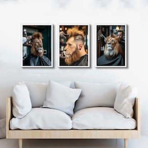 Kit 3 Quadros Decorativos Barbearia - Leão 24X18Cm
