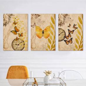 Kit 3 Quadros Decorativos Borboleta Vintage Sabe aquela sensação agradável, harmônica, bonita que sentimos em alguns lugares Agora você também pode ter essa sensação em sua casa, de forma simples A datela, possui o quadro ideal para decorar seu espaço deixando sua casa, empresa ou escritório lindos e moderno e no seu estilo Por que escolher datela Porque trabalhamos diariamente, buscando os melhores resultados e atendimento para agradas todos nossos clientes, pois você é nossa prioridade Cada quadro é produzido cuidadosamente, garantindo os mais altos níveis de qualidade. Pensando nisso, criamos quadros com uma grande variedade de estilos, podendo também personalizar com a foto ou medida que desejar. Para que possa encontrar o seu quadro ideal, e com a sua cara. Medidas do produto - 3 peças na medida de 40 cm de comprimento e 60 cm de largura com 2cm de espessura. Totalizando 120 cm de comprimento por 60 cm de largura com 2cm de espessura. Material - trabalhamos com impressão em tecido canvas. É um material especial para impressão 100% algodão, com uma preparação especial anti-mofo. Apropriada para impressões de obras de artes. Instalação e limpeza - a instalação é bem simples pode utilizado o método tradicional, pendurado com prego e martelo, ou se preferir pode ser fixado com buchas e parafusos. - para limpeza, utilize apenas um pano umedecido com água sem produtos químicos , recomendamos também que o produto não fique exposto a muita umidade e a muito sol.