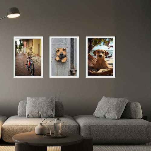 Kit 3 quadros decorativos cachorro caramelo 24x18cm - com vidro Cor: moldura branca Informações do produto tire todas as suas dúvidas no descritivo abaixo: decoração para quarto, sala, cozinha, escritório, área gourmet e muito mais. Chega de paredes vazias medidas - cada peça tem 24x18cm a5 . Material do papel - papel fotográfico brilhante de altíssima resolução acabamento - todos os quadros são acompanhados de vidro para proteção da imagem. - moldura em madeira maciça na cor preta ou branca conforme produto escolhido e pendurador . - os quadros são embalados de forma segura com plástico bolha com camada dupla de acordo com o tamanho dos quadros. - de 3 meses. Meu quadro chegou. Como posso fixá-lo Você precisa apenas de um martelo e um prego, pois os quadros já vão acompanhados de penduradores. Esta é a forma mais indicada. Como posso limpar meu quadro A limpeza é feita como um móvel comum da sua casa. Apenas um pano seco ou espanador são suficientes para tal Marca: Não Informado