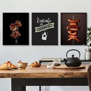 Kit 3 quadros decorativos cantinho churrasco fotos 24x18cm - com vidro Moldura: madeira preta Informações do produto tire todas as suas dúvidas no descritivo abaixo: decoração para quarto, sala, cozinha, escritório, área gourmet e muito mais. Chega de paredes vazias medidas - cada peça tem 24x18cm a5 . Material do papel - papel fotográfico brilhante de altíssima resolução acabamento - todos os quadros são acompanhados de vidro para proteção da imagem. - moldura em madeira maciça na cor preta ou branca conforme produto escolhido e pendurador . - os quadros são embalados de forma segura com plástico bolha com camada dupla de acordo com o tamanho dos quadros. - de 3 meses. Meu quadro chegou. Como posso fixá-lo Você precisa apenas de um martelo e um prego, pois os quadros já vão acompanhados de penduradores. Esta é a forma mais indicada. Como posso limpar meu quadro A limpeza é feita como um móvel comum da sua casa. Apenas um pano seco ou espanador são suficientes para tal