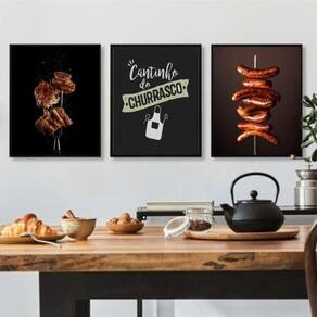 Kit 3 Quadros Decorativos Cantinho Churrasco Fotos 33X24Cm
