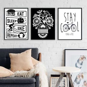 Kit 3 quadros decorativos cantinho da bike 33x24cm - com vidro Moldura: madeira preta Informações do produto tire todas as suas dúvidas no descritivo abaixo: decoração para quarto, sala, cozinha, escritório, área gourmet e muito mais. Chega de paredes vazias medidas - cada peça tem 33x24cm a4 . Material do papel - papel fotográfico brilhante de altíssima resolução acabamento - todos os quadros são acompanhados de vidro para proteção da imagem. - moldura em madeira maciça na cor preta ou branca conforme produto escolhido e pendurador . - os quadros são embalados de forma segura com plástico bolha com camada dupla de acordo com o tamanho dos quadros. Garantia - garantia de 3 meses. Meu quadro chegou. Como posso fixá-lo Você precisa apenas de um martelo e um prego, pois os quadros já vão acompanhados de penduradores. Esta é a forma mais indicada. Como posso limpar meu quadro A limpeza é feita como um móvel comum da sua casa. Apenas um pano seco ou espanador são suficientes para tal Ean: 7893356889992