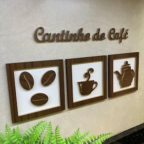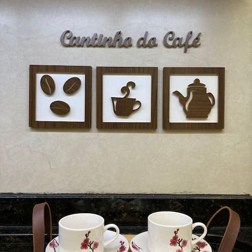 Quantidade: 3 unidades de quadros + frase Cantinho do Café.