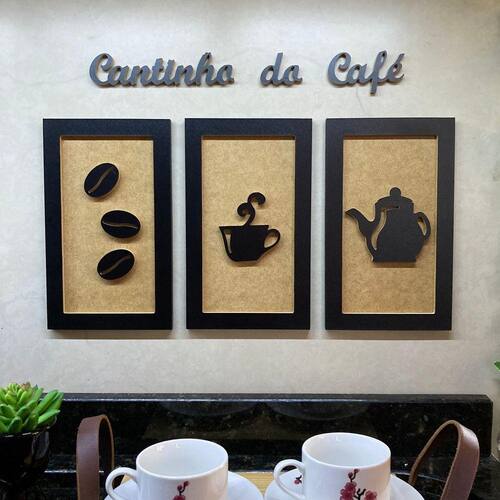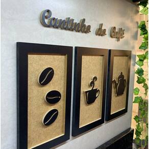 Quantidade: 3 unidades de quadros + frase Cantinho do Café.