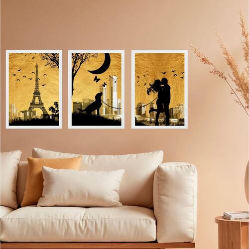 Kit 3 Quadros Decorativos Casal Cachorro Paris 24X18Cm